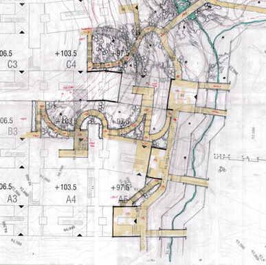 Along this stream will grow a perennial natural ecosystem dotted with small interactive spaces. This will make up the central spine of the project.