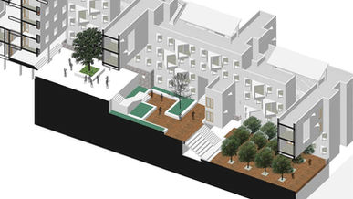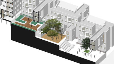 This project allowed us to work on a much larger site, where it was decided early on that the spatial structure of the site would dictate the floor space- land occupancy of the project.