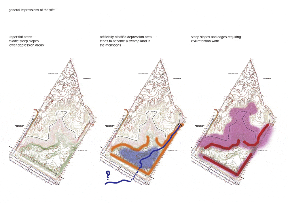 At the lowest portion of the site, is the flat land (which was once a natural stream bed) now proposed as the maidan and public gathering area.